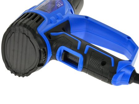 Wysokiej jakości opalarka elektryczna wyposażona w silnik elektryczny o mocy 2000W umożliwiający wytworzenie temperatury na poziomie 550°C. Urządzenie wyposażone zostało w 4 poziomowy przełącznik pozwalający wybrać jeden z 3 poziomów temperatury i przepływu wydmuchiwanego powietrza. Praca na drugim i trzecim biegu daje możliwość płynnej regulacji temperatury wydmuchiwanego powietrza. Opalarka doskonale sprawdzi się podczas usuwania starej farby, różnego rodzaju olein, idealna do pracy z materiałami termokurczliwymi. Może być używana do rozpalania pieca bądź grilla bez konieczności stosowania rozpałki.